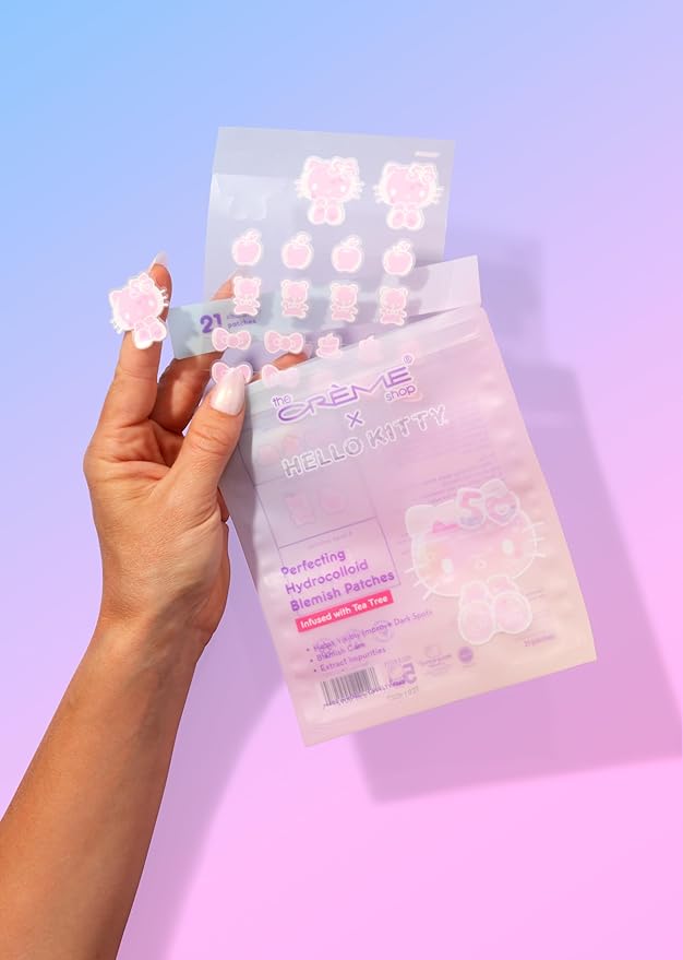 ¡Hello Kitty te tiene cubierta! Estos parches hidrocoloides, probados por dermatólogos, absorben la grasa, aplanan las imperfecciones y protegen tu piel mientras duermes. ¡Clínicamente probado para eliminar los granos de forma rápida, sin complicaciones y con un toque de ternura!